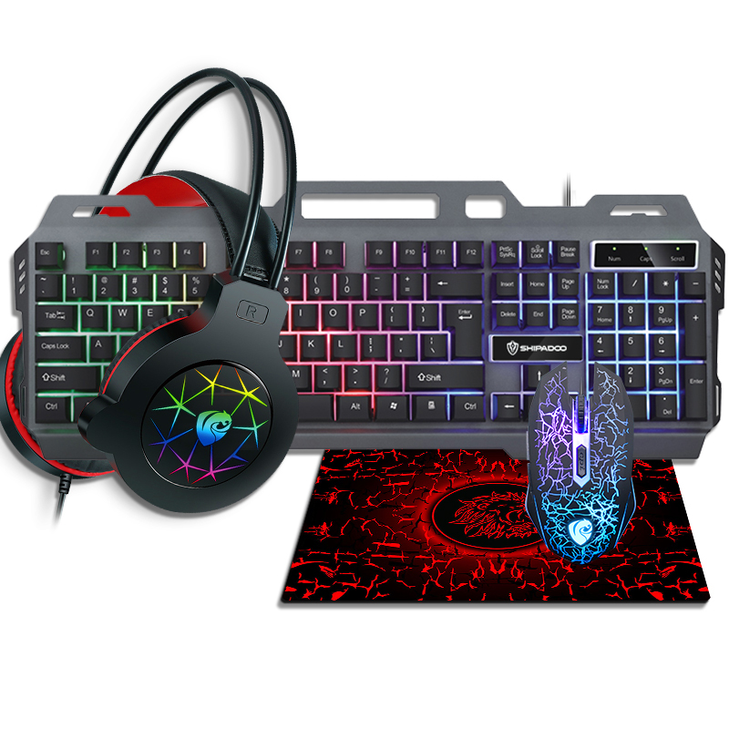 Real mechanical feel keyboard, mouse, headphone, mouse pad four piece set for gaming and esports